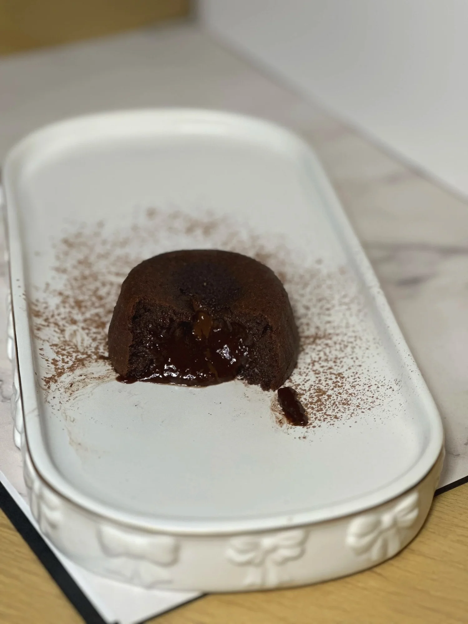 A soft chocolate cake with a molten heart — indulgent, intense, and freshly baked for pure pleasure in every bite. Best enjoyed hot.